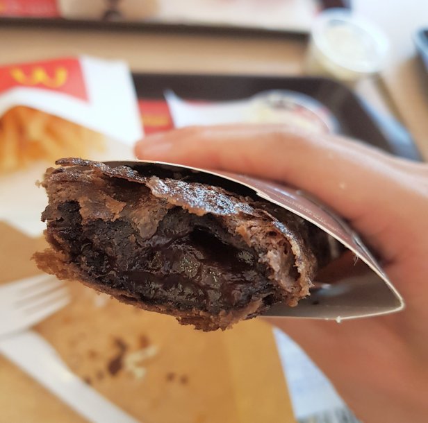The chocolate pie has a rather “molten” chocolate as the chocolates will flow out when you are eating. The crust seemed to be too flaky as my crust dropped was all over the place when I eat. The chocolate taste like those used in waffles (Meaning not expensive chocolate) and a bit milo-ish. But I do see myself coming back to eat the pie again. The pie is also quite cheap as it cost only $1.40.