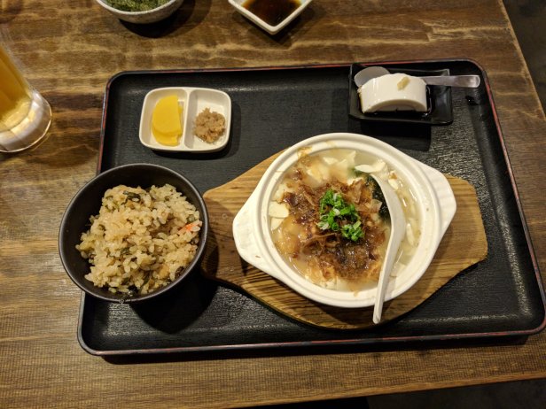 We ate beef cube with Okinawa rice and Okinawa rice with toufu. Both tasted ok, but the pink guava beer was quite good.