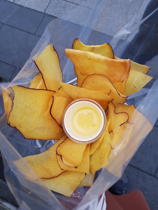 The queue for the fried potato is also long. There were around 8saurce available for choosing.