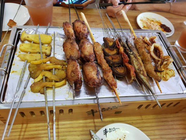 The food was kind of cool as we ate BBQ on sticks. The staff would BBQ everything in the kitchen before bringing them out. The bbq-ed food would reside on a box that has 2 candles that provide the heating to ensure that the food is still warm.