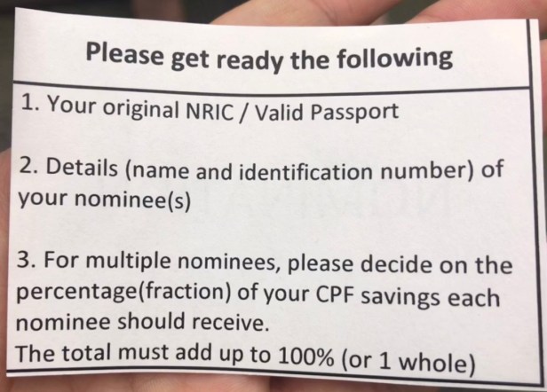 Today I headed over to CPF to make a nomination. This is the first time I am doing any nomination after my marriage as the previous nomination is not valid after you got married.
