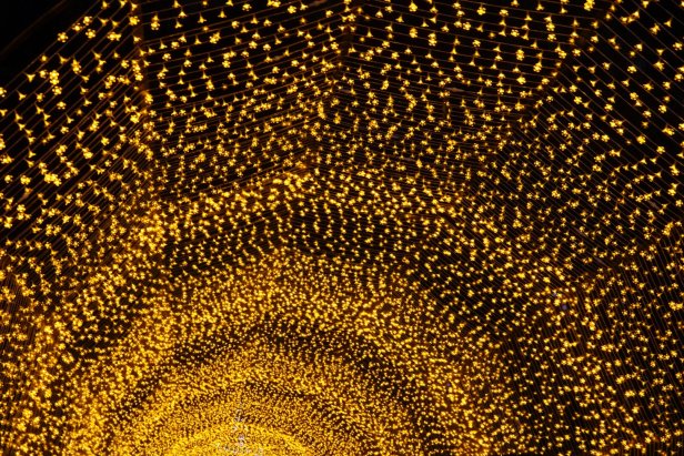 They are this yellow lighting titled “Walk of Peace”. I guess it looked nice? But there are too many people here to take a decent photo.
