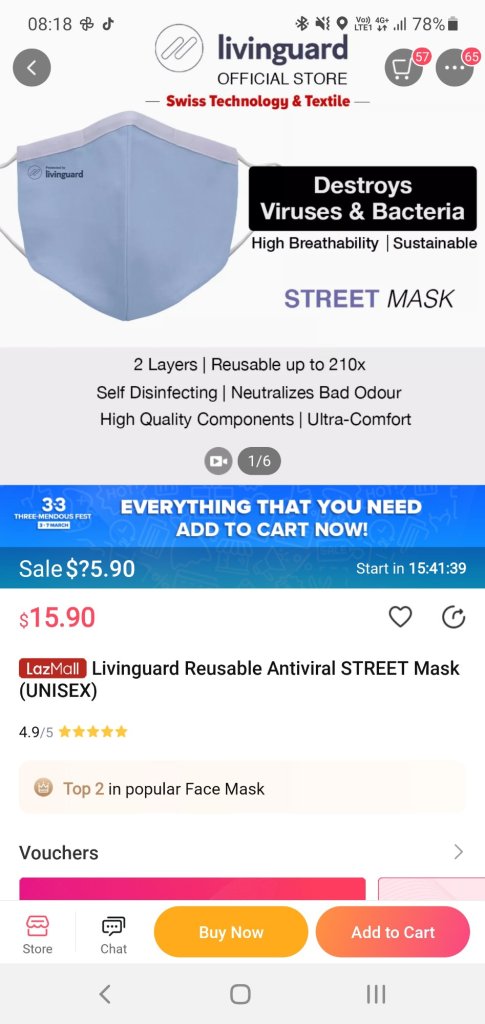 The selling point of this mask is that it has a “livinguard” technology that can removed virus and bacteria. The mask has even been tested against certain covid variant. As such, instead of washing everyday, you can choose to wash once a week (assuming not dirty). This makes it last for approximately 7month (30 weeks) instead of 30 days. The mask is good for 30 wash and is advised that resident can use it as a double mask in future if needed.