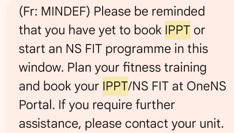 Usually I also need to complete my IPPT(fitness test) but somehow the admin has messed things up. Nevertheless, I do have several more months before I need to complete.